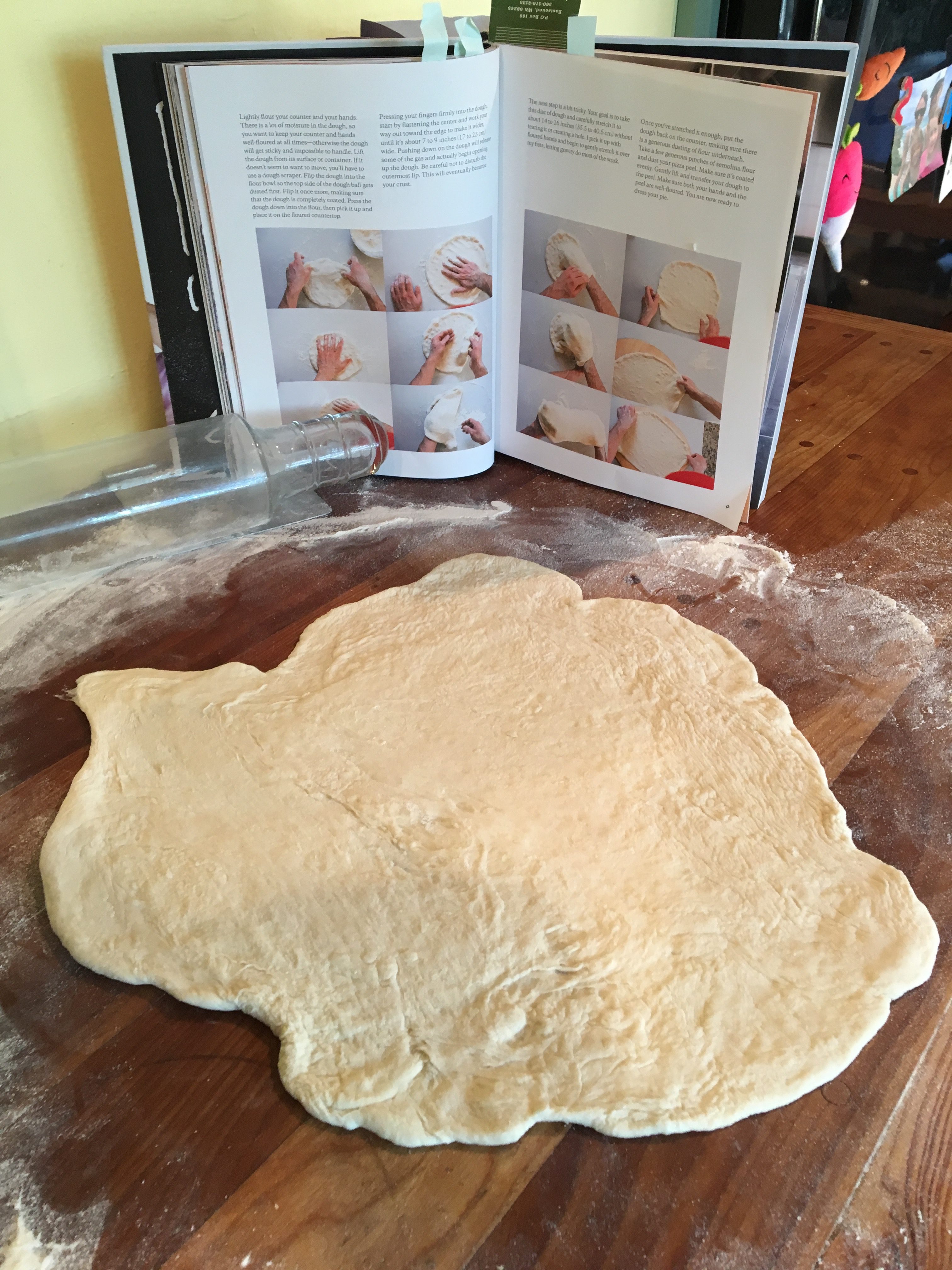 This was the hardest part and I have to say, I cheated and used my Grandma’s rolling pin. Need to do some recon on what is the trick to pushing, pulling and stretching the dough.